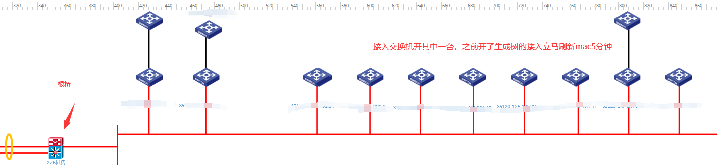如下图所示,问个大佬咨询一下,接入交换机开启生成树以后,会发现网络中的汇聚交换机(根桥)就直接存在TC报文。比如 汇聚(主根桥)跟底下的接入交换机进行互联时,当其中一台接入发生断电或者整个网络拓扑改变以后,之前开启生成树的接入交换机集体刷新mac地址表300S。(业务中断5分钟)怎么取消这个TC报文存在导致网络波动,我在网络稳定的时候模拟交换机以外断电,将互联的接入交换机聚合组shutdown,再开启。立马整个网络中开启生成树的接入交换机就全部刷新mac地址表,集体业务中断5分钟。