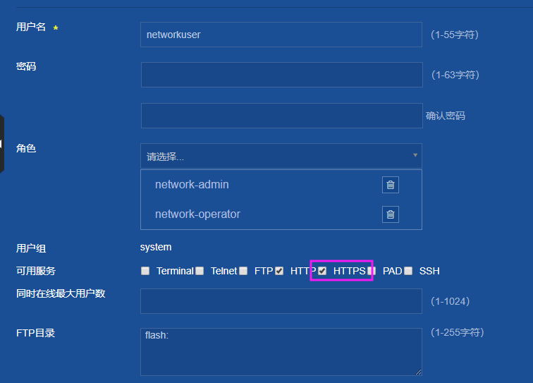其次登陆的用户仅赋予HTTPS登陆,参考命令如下: