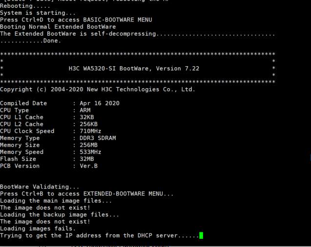 你这5个版本,我都分别刷过了,重启后,还是不能用,也致电过 华三400售后,执行Ctrl+Y: 将ap改成oasis模式,也是没成功。还是这个“ Trying to get the IP address from the DHCP server...... ”界面