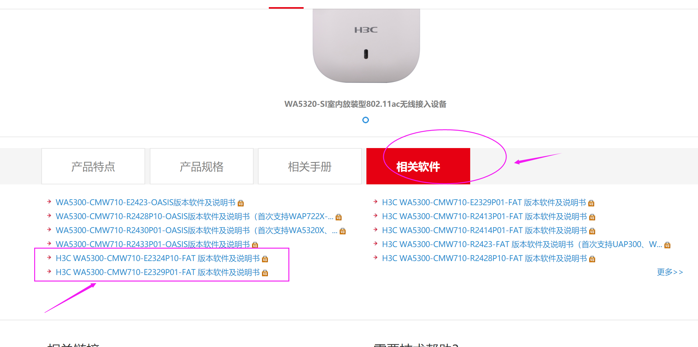 没有啊,你看后面的说明,H3C WA5300系列版本(适用于WA5530、WA5510E-T、WA5530-SI、WA5630X、WA5320X、WA5320X-SI、WA5320X-E、WAP723-W2、WAP722X-W2、UAP300、WA5320i、WA5320i-LI、WA5320X-LI、WA5530-LI、WA5530S、WAP722XS-W2、WA5340)这里面都没有写5320-SI这个型号,当然不支持了