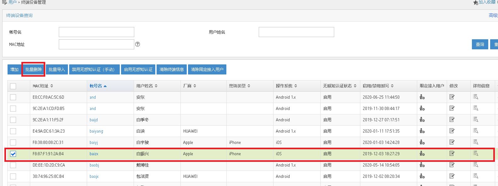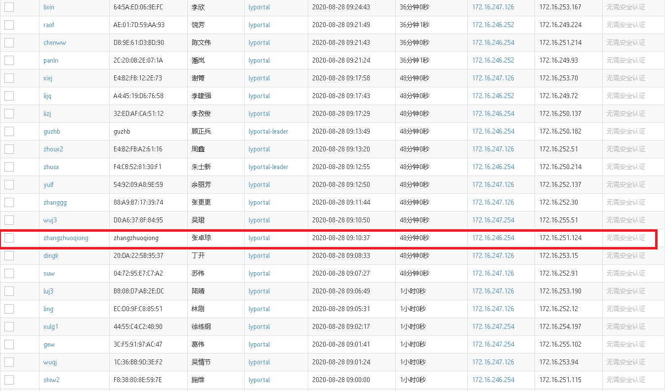 V5 AC WX3024E R3509P68,集中转发,结合IMC做portal无感知,红框里的张卓琼这个用户 今天出现连上wifi上不了外网,IMC能观察其已上线,终端设备管理删除设备信息 重新认证后可以上了。