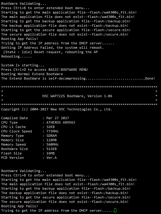 看到在启动的时候在获取软件版本和IP地址。说明现在是FIT模式下。