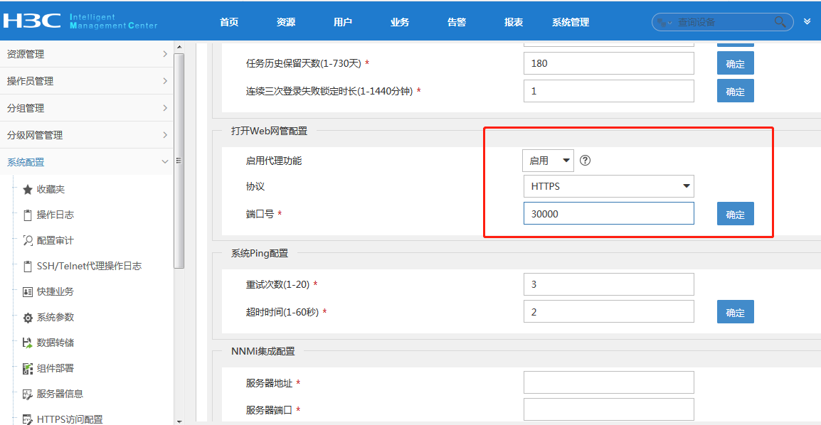 在“系统管理”-“系统参数”的打开WEB网管配置这里修改,可参考如下截图: