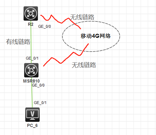 MSR810配置有线连接和4G模块无线连接,其中,4G模块链路用于备份有线链路。