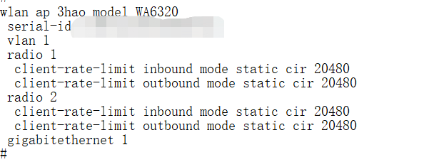 [AC-wlan-ap-group-group1-ap-model-WA4320i-ACN-radio-1]client-rate-limit outbound mode static cir 2048