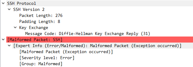 测试:路由器到服务器网关SSH能通,服务器到路由器SSH也能通,防火墙出口侧地址也能SSH通服务器;路由器SSH服务器输入用户名密码后提示conection closed;