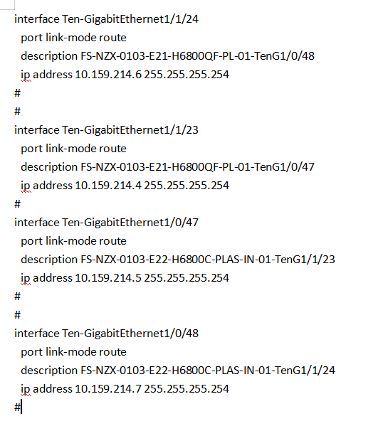 看到您使用的是31位的掩码进行互联。设备间的互联一般都使用30位掩码的地址段进行互联互通。