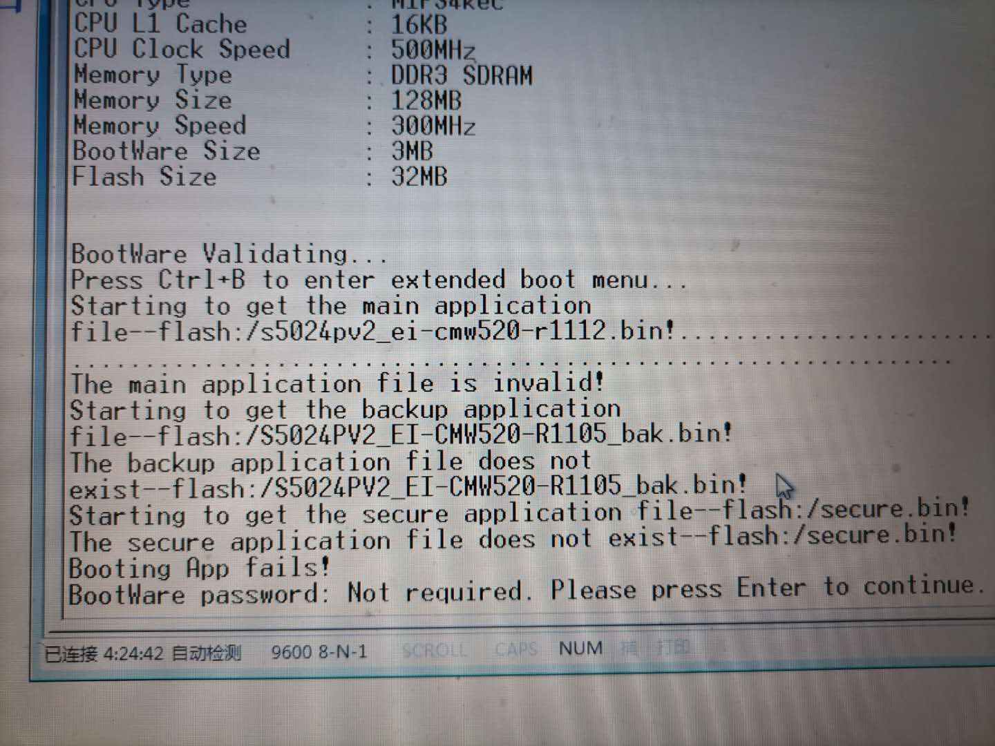 哦,R1112.bin不是传到flash里吗?为何我传完后重启是正常运行的?但配置好交换机保存文件后重启,就出现问题了。