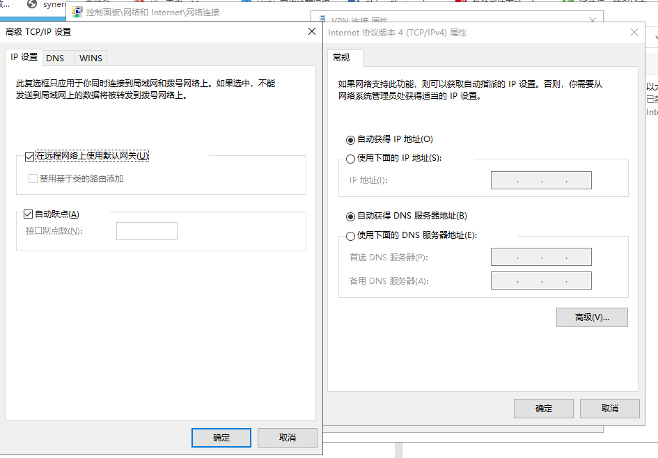 不添加路由的话,在设置vpn属性时,网络----Internet协议版本4----高级-----在远程网络上使用默认网关打钩试一下