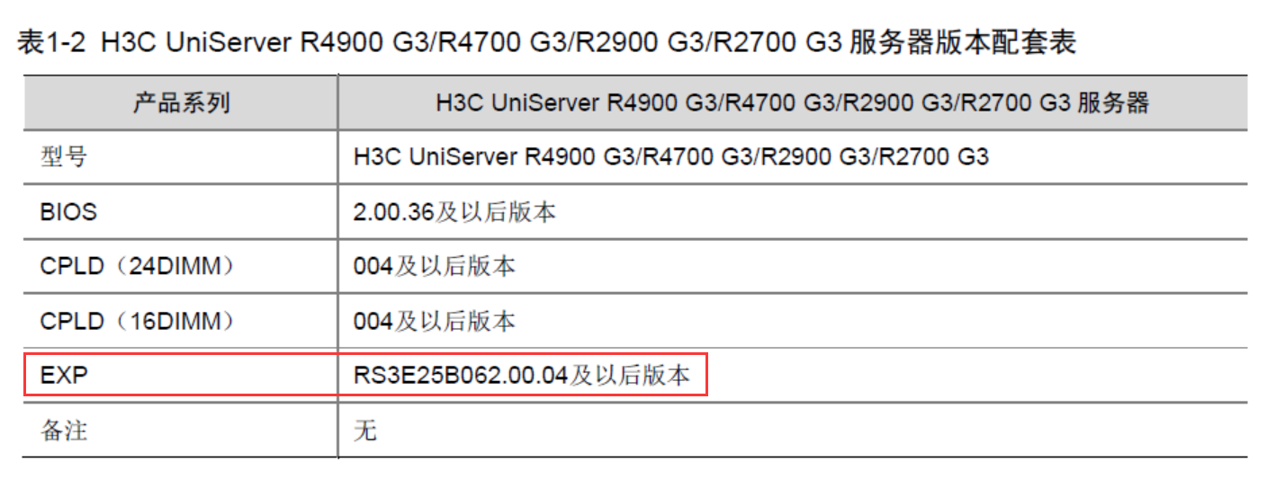 升级HDM查看 版本说明书要求要符合版本配套表,其中有一项是EXP版本。登录HDM没找到EXP版本,R4900 G3的EXP版本在哪里查看呢?谢谢!