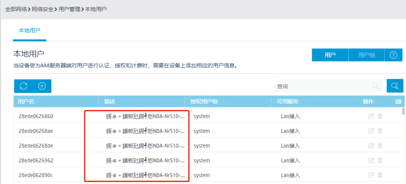 在命令行创建无线用户,并添加描述信息,显示正常。但是在网页查看时,会出现乱码,在命令行重复录入后,依然没效果