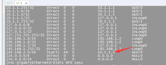 ip route-static 192.168.2.0 24 GigabitEthernet0/0 10.1.1.2 bfd echo-packet