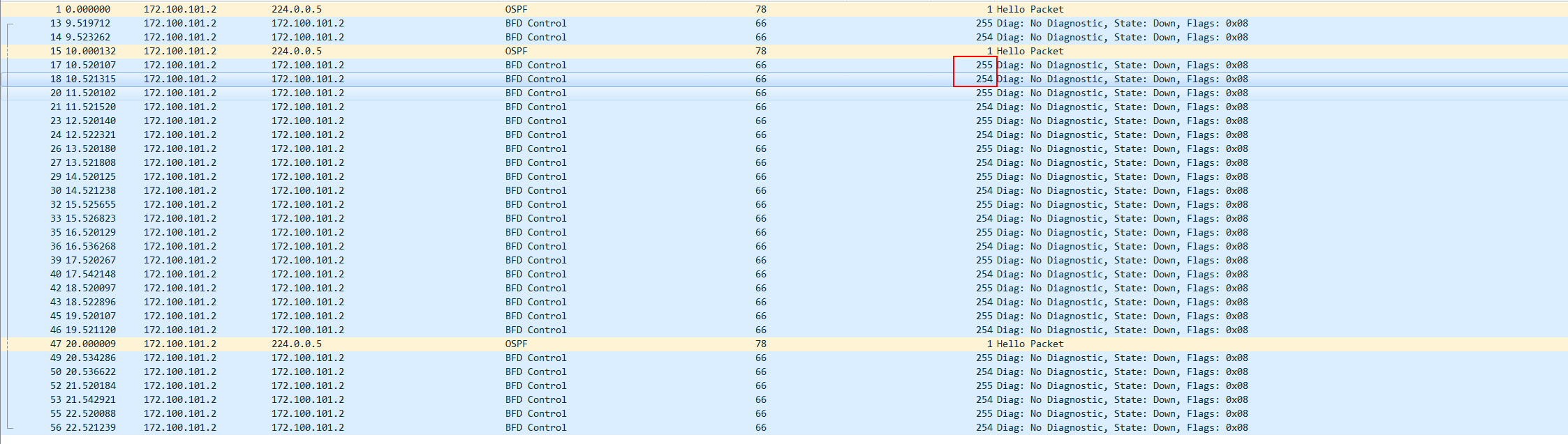 而图片中显示是BFD CTRL,这个是双向BFD检测。