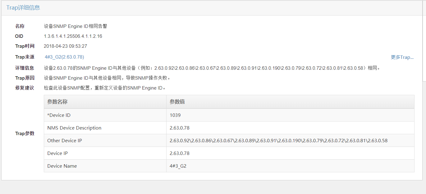 设备SNMP Engine ID相同告警