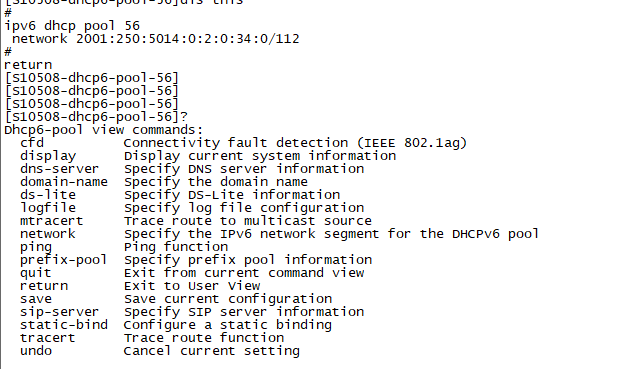 我核心交换机是10508,版本是V5 1208p03的,在配置IPV6的DHCP时无法配置ipv6的网关,没有gateway-list这条命令