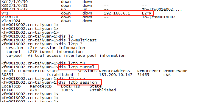 VT1 down down 192.168.6.1 L2TP