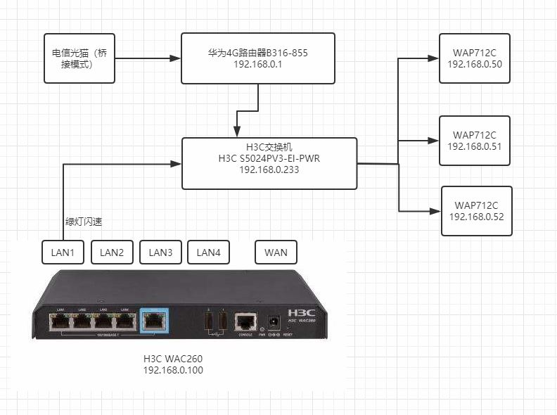电信光纤入户为200M,路由器为华为4G路由器,用其自带的wifi进行网络速度测试结果为100M-200M,但是连接 wap712c AP后再进行测试只有10M-20M