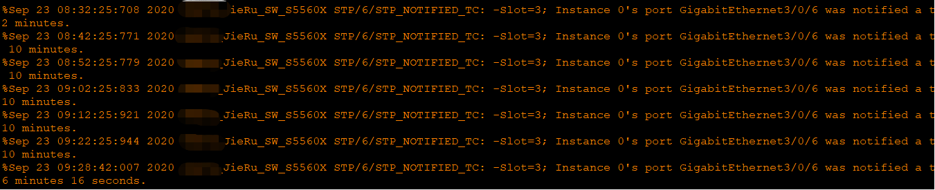 请教一下,为什么我接入交换机s5560x的一个接口下面配置了stp边缘端口,下面接一台傻瓜交换机。为什么傻瓜交换机下面的pc开关机,接入交换机s5560x上面会有stp收敛的报文?
