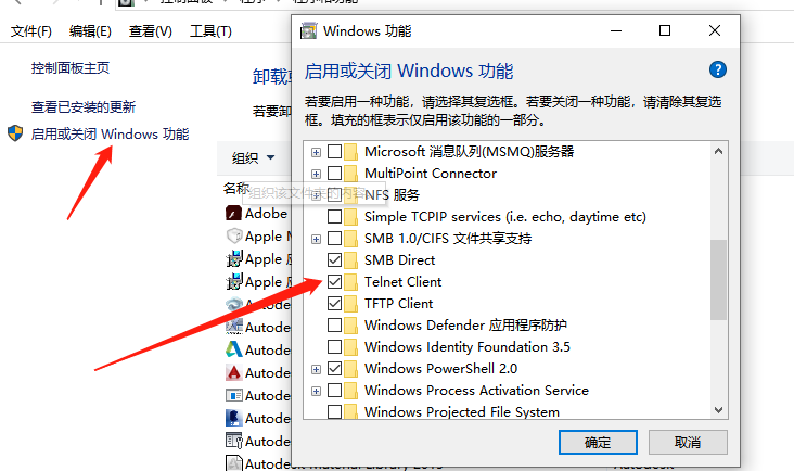 如果自己是PC,需要在卸载程序中勾选telnet安装: