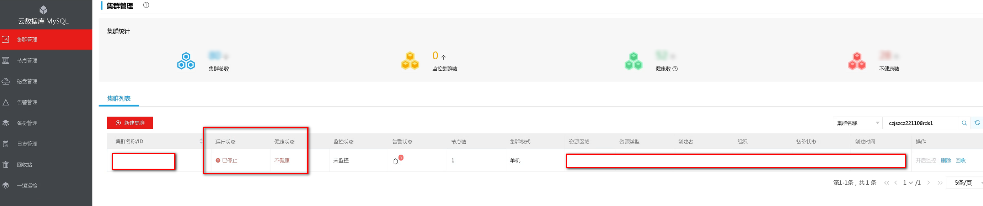 mysql单机状态显示为“已停止,如下图。