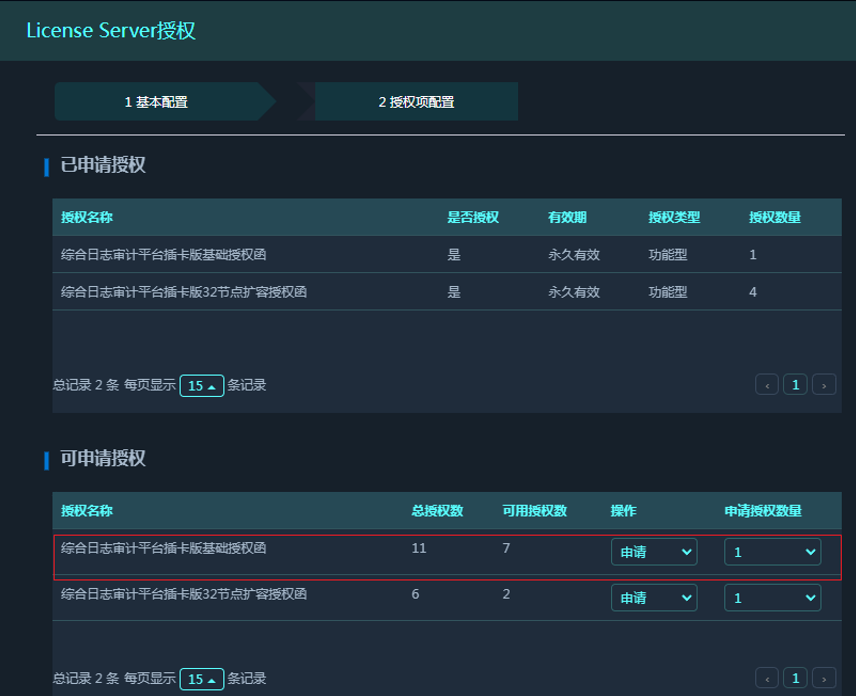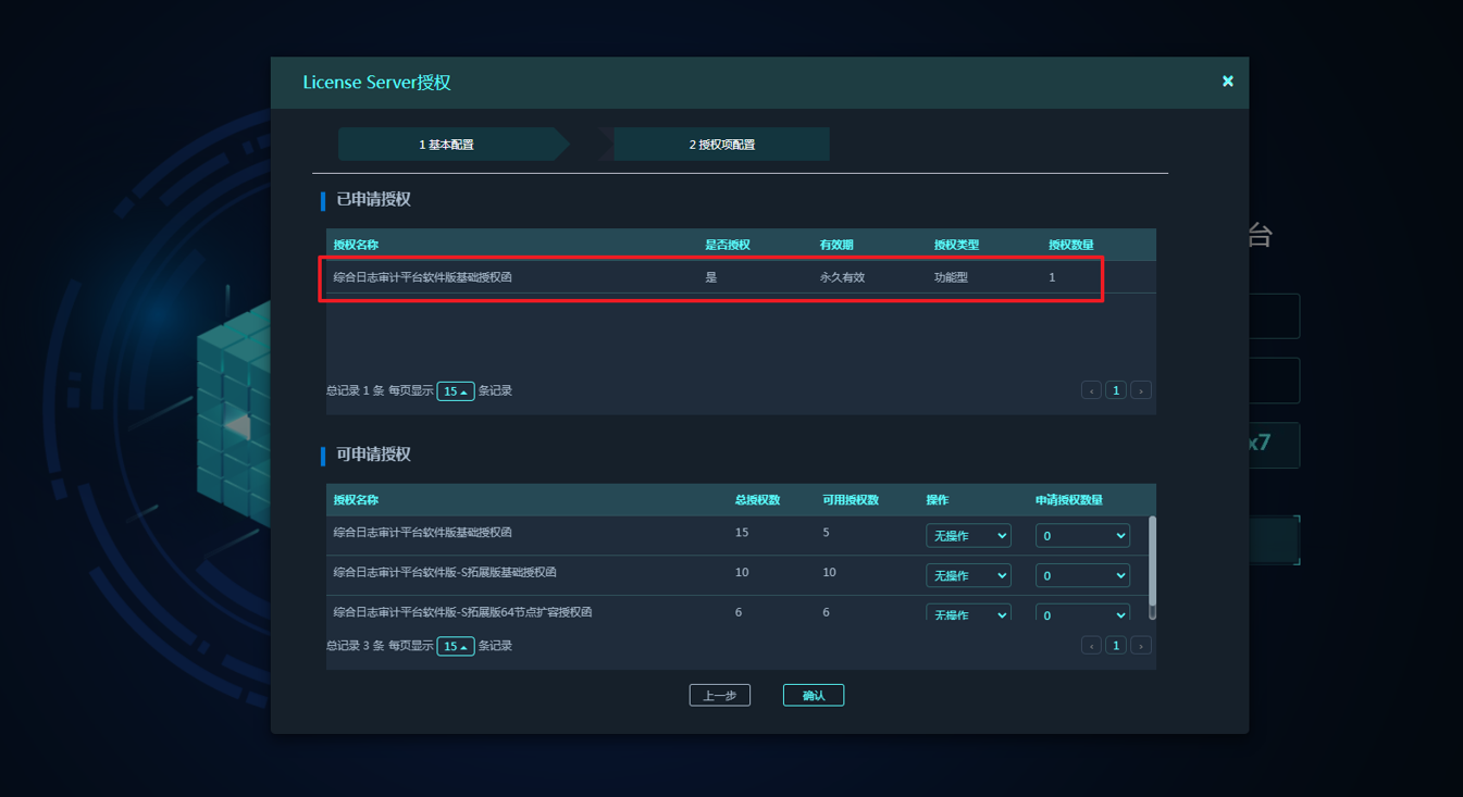 (4)在“授权项配置”页面,选择可申请授权,单击<确认>激活授权。