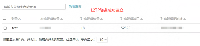 >> UR/ERG3的”IPsec VPN“的”监控信息“和”L2TP服务器端“的”隧道信息“中可以看到已经搭建成功的隧道信息。