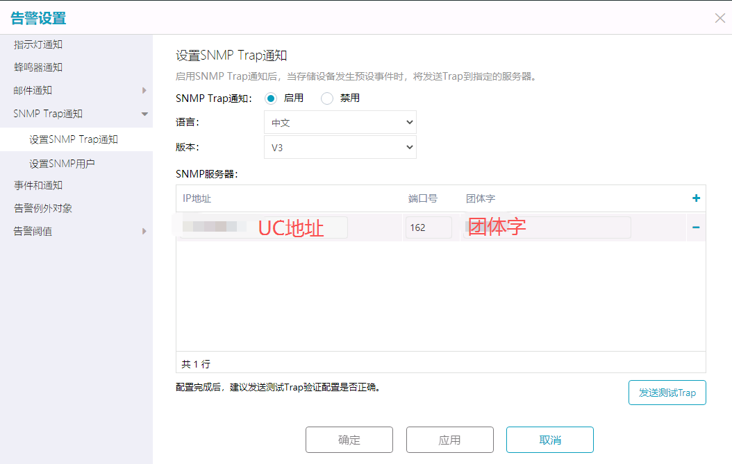 ②网络可达,协议可达,UC采用SNMP协议与CF8850H存储进行对接