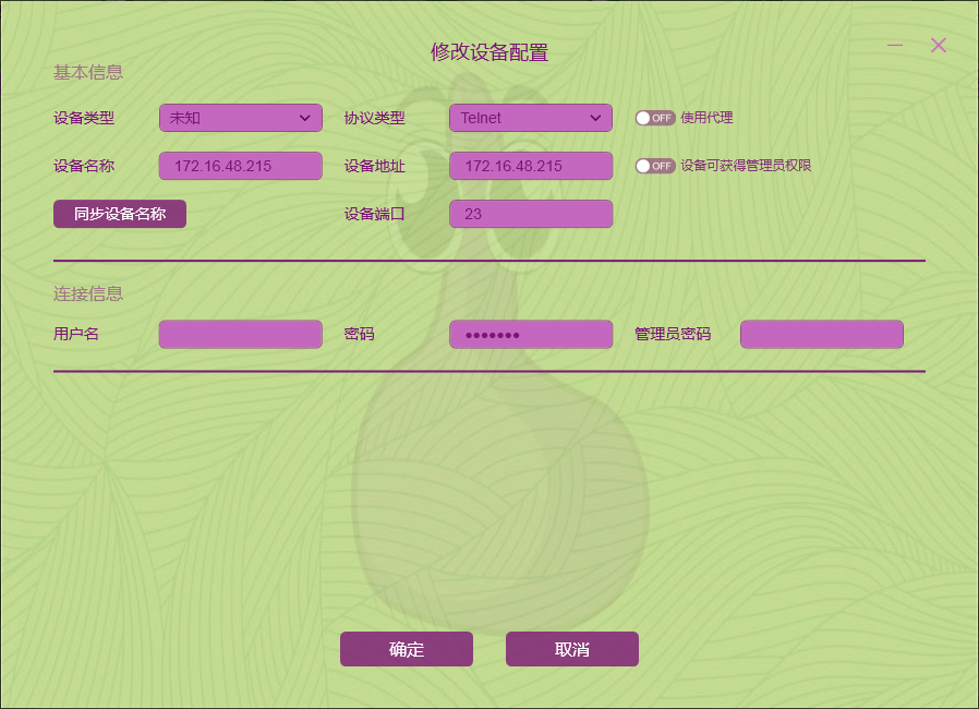 如果设备只配置了密码认证,在标杆的神器配置设备信息时,只填写密码即可,用户名不是必输项。