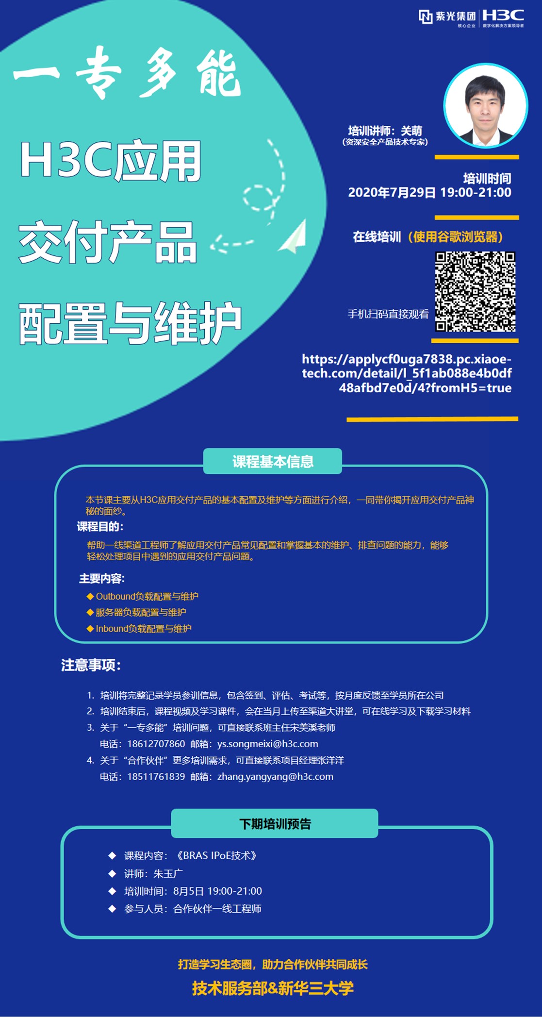 A:目前新华三集团技术服务部和新华三大学基本每周三19:00-21:00都有一期直播培训,培训通知及直播链接会在知了社区话题广场合作伙伴频道、华三服务APP上同步公布,并通过邮件方式告知合作伙伴技术经理及各位合作伙伴。