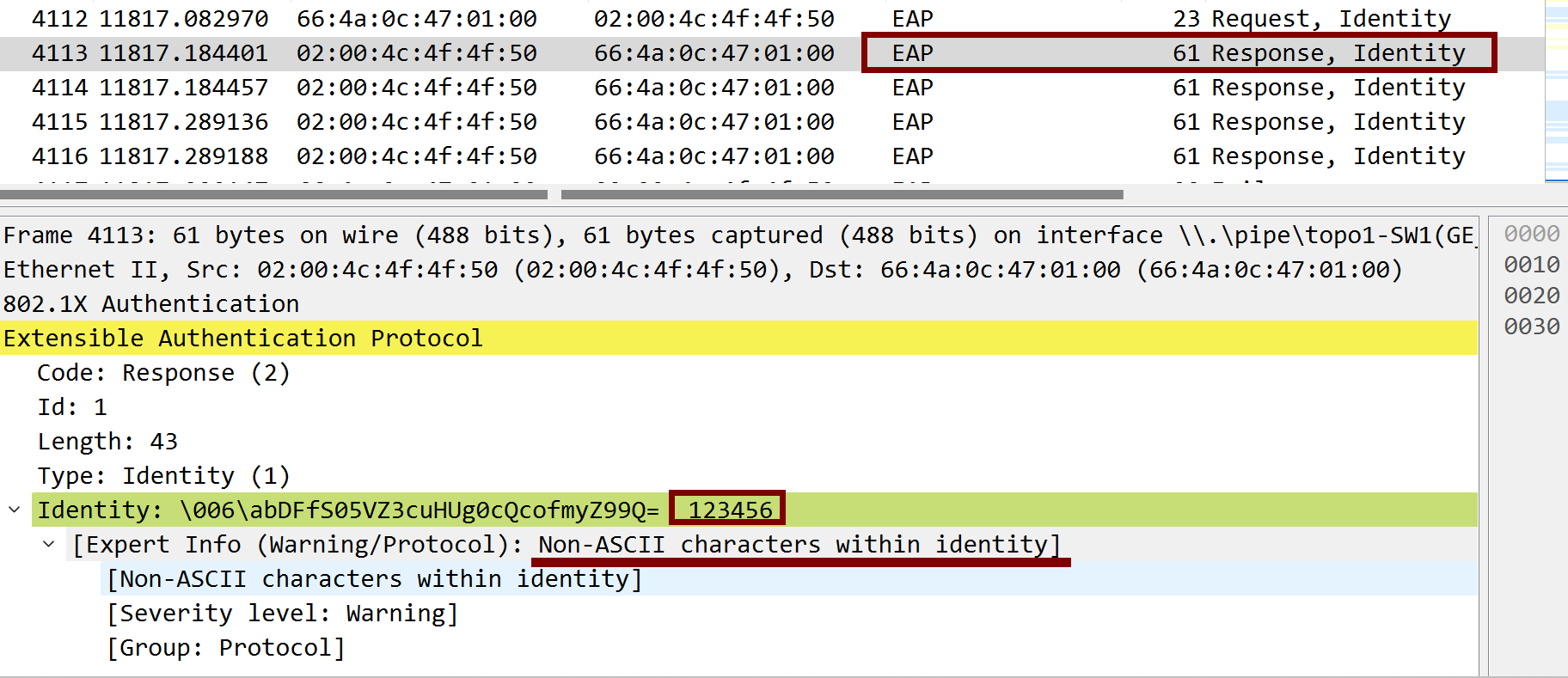 *Oct 19 14:08:42:538 2023 SW1 DOT1X/7/ERROR: Mismatched identifier.