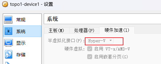 8. 如果电脑无法启动Server,需要进入VM中将对应虚拟机的系统-硬件加速-半虚拟化接口手动修改为Hyper-V